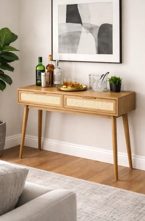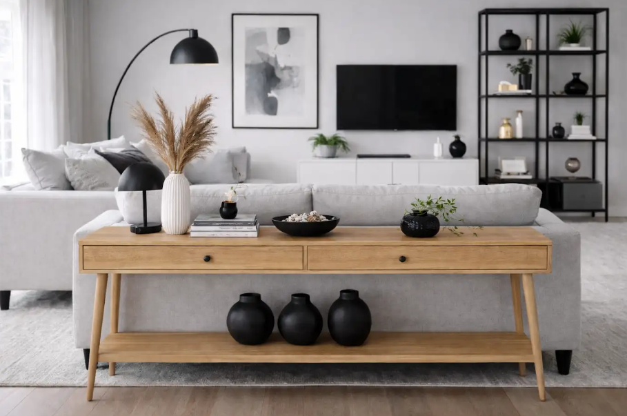 Uma grande vantagem do aparador retrô é a versatilidade. Ele pode ocupar a sala de estar, o hall de entrada, o quarto ou até um corredor sem parecer deslocado. Outra vantagem é a variedade de modelos: existem opções em madeira maciça, MDF, peças coloridas ou com acabamento natural, o que facilita a escolha de acordo com o estilo do ambiente.