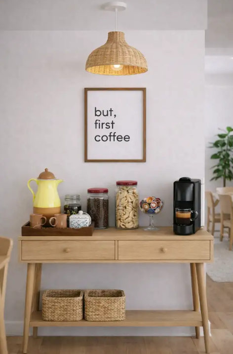 Transforme o aparador retrô em cantinho do café