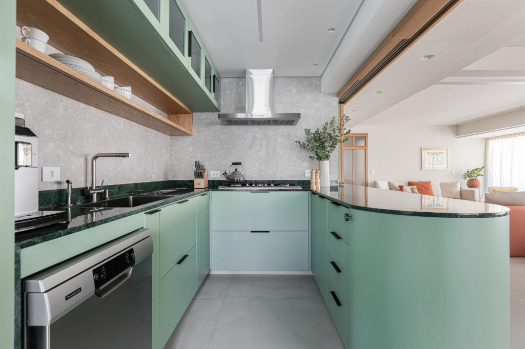 Uma das maiores vantagens do armário de cozinha planejado é permitir a criação de um projeto que atenda exatamente às necessidades do ambiente. Isso é ainda mais importante em cozinhas integradas com lavanderias, onde o espaço precisa ser bem aproveitado para separar os itens de cada área de forma prática.