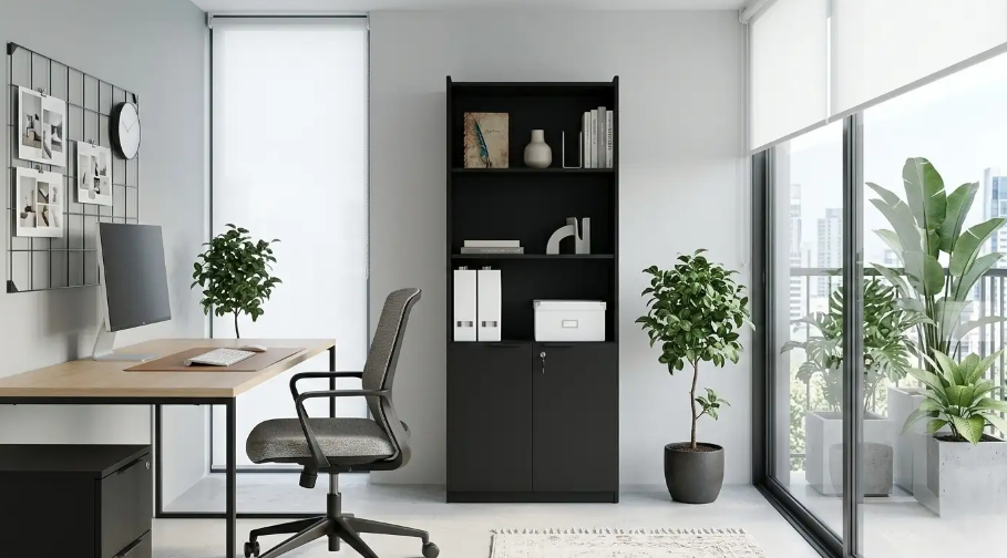 Um armário multiuso baixo serve de suporte para impressora ou monitor sem tomar muito espaço no escritório. Modelos com gavetas organizam documentos de forma prática, e versões com rodinhas e nichos abertos são ótimas para livros e itens de papelaria. Para quem acumula muitos documentos, o modelo com chave oferece mais controle sobre o acesso.