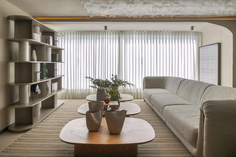 - sobreposição de tons: misture bege, cinza e off-white em superfícies diferentes. Parede, piso e móveis em nuances distintas criam uma composição com muito mais profundidade visual;