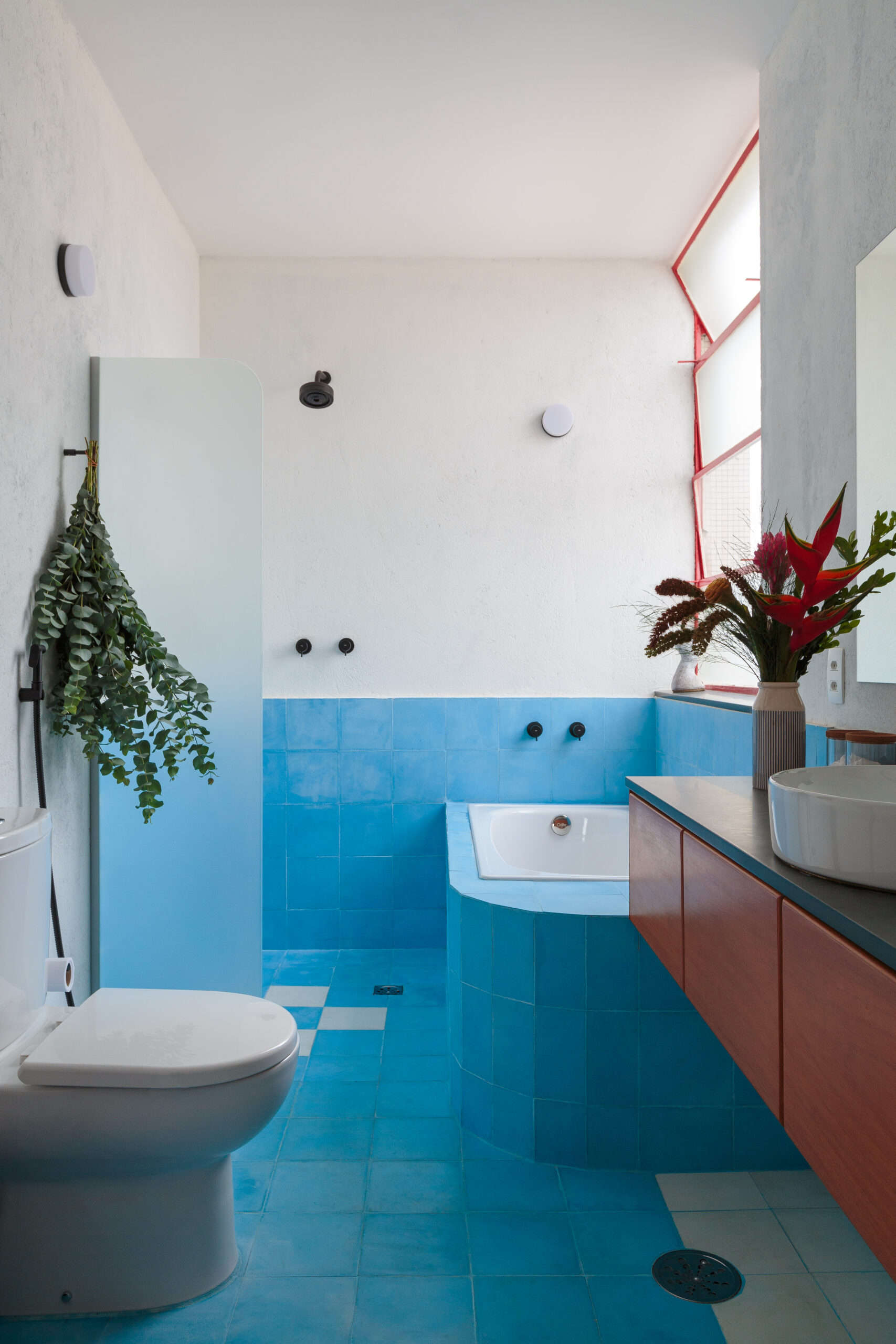 A tendência de explorar cores nos banheiros e lavabos vem ganhando força como forma de imprimir personalidade e leveza a esses ambientes. Longe de serem ambientes neutros, eles se transformam em cenários vibrantes, que unem funcionalidade, estética e bem-estar. Projetos recentes revelam como diferentes paletas, que vão da cor terracota ao verde, do rosado pastel ao vermelho intenso, além de contrastes em preto fosco, podem redefinir a experiência cotidiana.