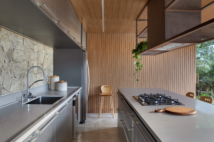 Inox combina com projetos contemporâneos, aguenta rotina pesada e facilita manutenção diária – Foto: Anita Soares/CASACOR | Projeto: Diego Raposo e Manuela Simas