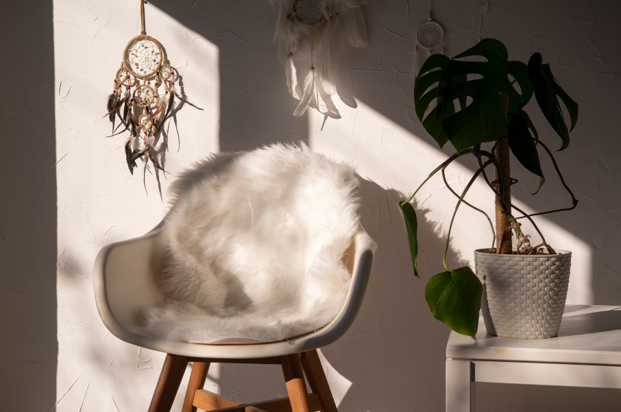 O amuleto se adapta a diferentes estilos, desde que o modelo escolhido esteja em harmonia com o restante do ambiente. Em decorações boho e rústicas, versões em macramê com cordão de algodão cru ou juta criam um efeito natural, bonito e com boa combinação com paredes claras, móveis de madeira e plantas.