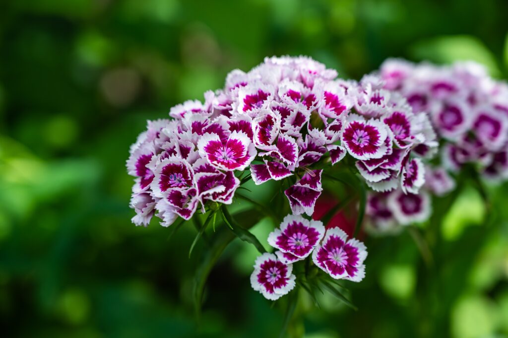 Ainda na linha das cores fortes, a cravina chama atenção pelas pétalas recortadas em tons de rosa, vermelho e branco, muitas vezes com desenhos que parecem pintados à mão. Originária da Ásia e muito cultivada no Brasil, ela prefere solos leves e que não retenham água em excesso.