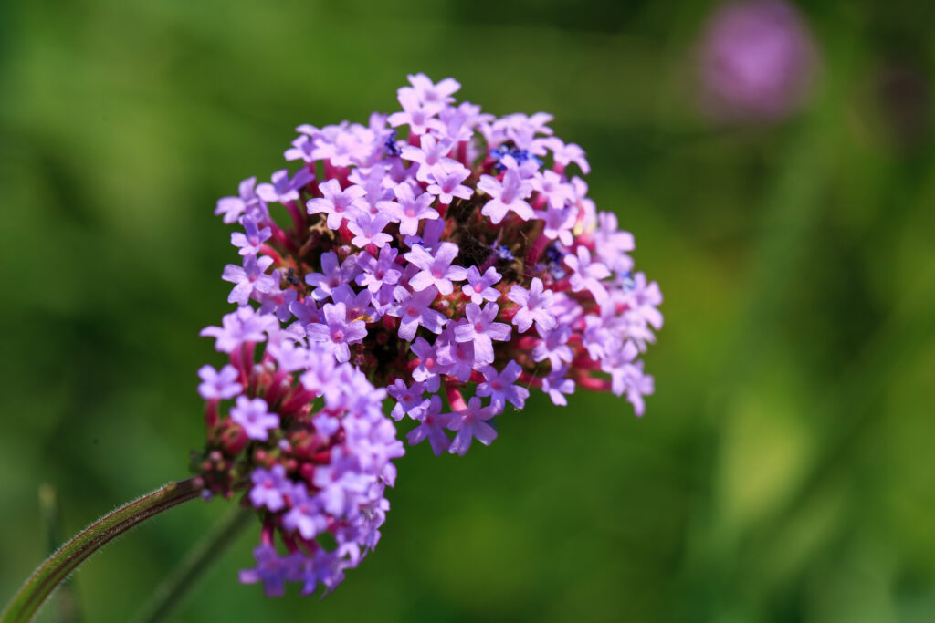 Das flores do campo mais conhecidas, seguimos para uma opção menos óbvia: a verbena. Ela exibe pequenas flores coloridas agrupadas em cachos compactos, com efeito visual delicado e atrativo. Nativa das Américas e da Europa, prefere bastante sol, solo sem encharcamento e regas moderadas.