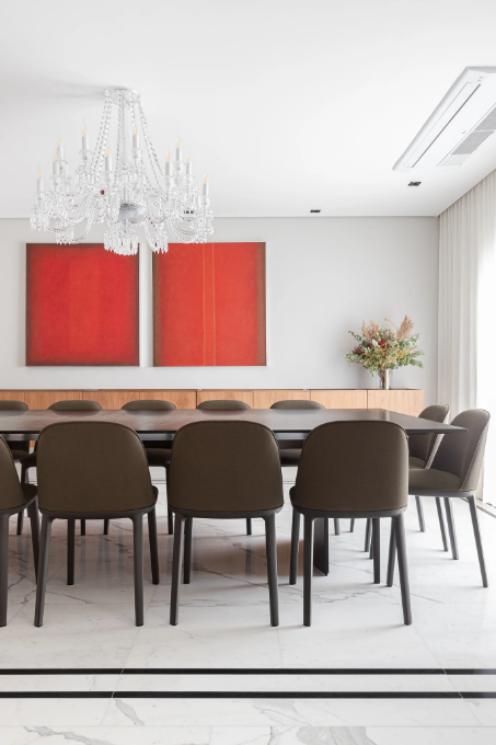 - sala de jantar: posicionado sobre a mesa, cria um ponto focal elegante e distribui luz uniforme durante as refeições;