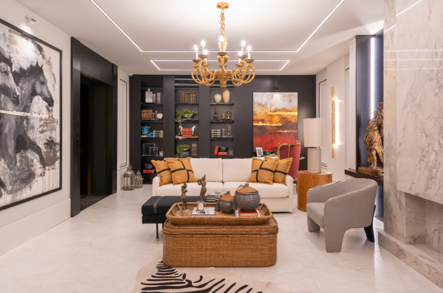 - sala de estar: deixa o ambiente mais acolhedor, sobretudo em propostas clássicas ou com pé-direito alto;