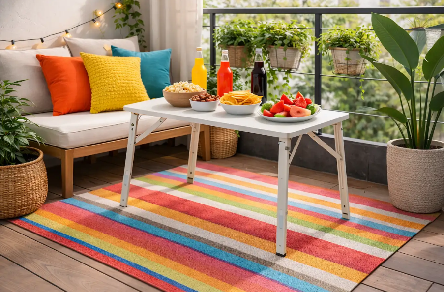 A mesa dobrável se encaixa em diferentes ambientes da casa e atende necessidades que mudam ao longo do dia. Em alguns espaços, serve como apoio rápido. Em outros, substitui móveis maiores sem pesar na circulação.
