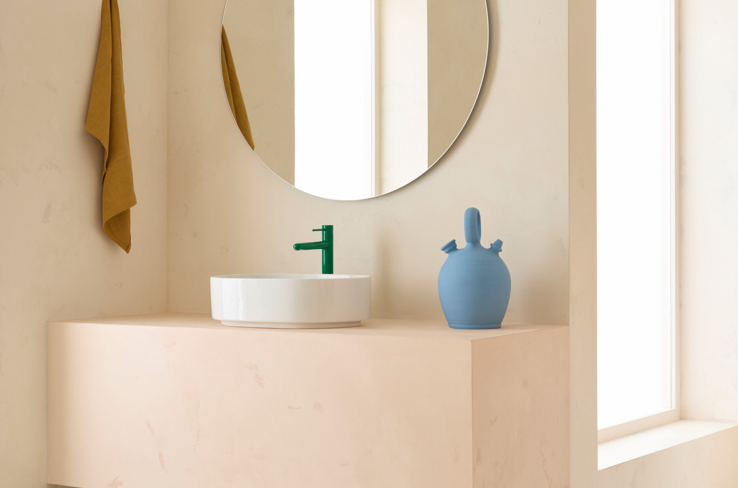 Design mediterrâneo, formas suaves e uma paleta criativa transformam metais sanitários em peças de expressão