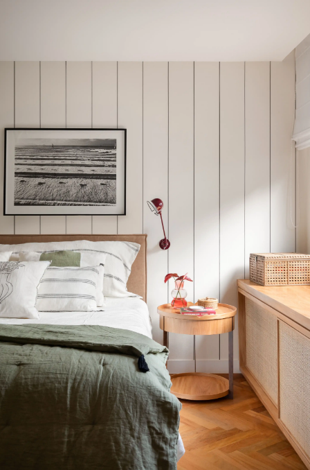 O piso do quarto ganha muito com esse padrão, especialmente com peças que imitam madeira em tons neutros ou terrosos. Para um resultado mais ousado, o assentamento pode ir para uma parede de destaque, com efeito texturizado que dispensa a cabeceira tradicional.