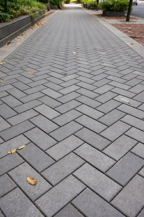 Em calçadas, rampas e áreas de lazer, a espinha de peixe é um padrão muito adotado com piso intertravado de concreto, inclusive indicado para vias com tráfego de veículos por aumentar a durabilidade do revestimento. Pedras e cerâmicas de alta resistência também são boas opções para esse tipo de aplicação.