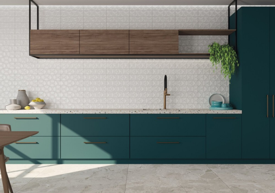 - cozinha: parede da bancada ou parede atrás do fogão. Prefira peças com relevos menos profundos para facilitar a remoção de gordura na limpeza diária;