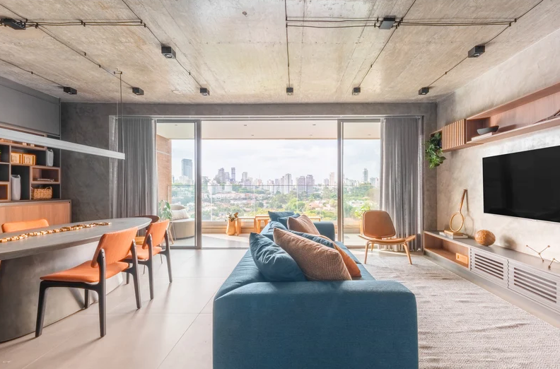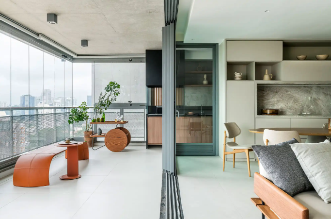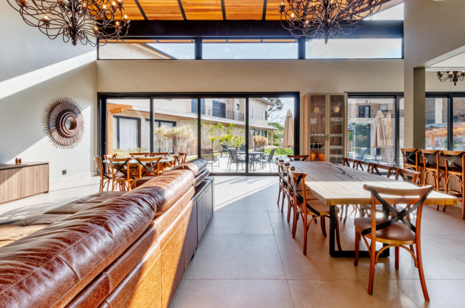 A maior vantagem de investir na porta de vidro de correr para sala é que ela pode integrar os ambientes, como a cozinha com a sala de estar ou jantar. Ou seja: ela permite que sua decoração seja ampla.