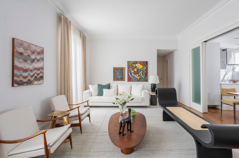 Na dúvida, compre uma porta de correr branca para sala. É um modelo neutro e que combina com diferentes ambientes.
