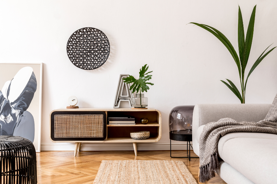 Apesar da origem retrô, essa peça se tornou atemporal. Você encontra modelos em madeira maciça, MDF, metal e até versões com detalhes em couro ou palha. Os acabamentos também variam bastante: madeira natural, laqueados em cores vibrantes ou neutras, todos com possibilidades diferentes de personalização.