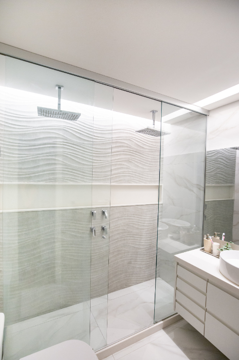 Como a umidade é constante no banheiro, a escolha do material influencia diretamente no dia a dia. PVC e porcelanato suportam melhor a exposição à água e têm limpeza simples, o que os torna os mais indicados para esse ambiente. Em banheiros pequenos, padrões menores e cores neutras suavizam o visual e deixam o espaço mais equilibrado.