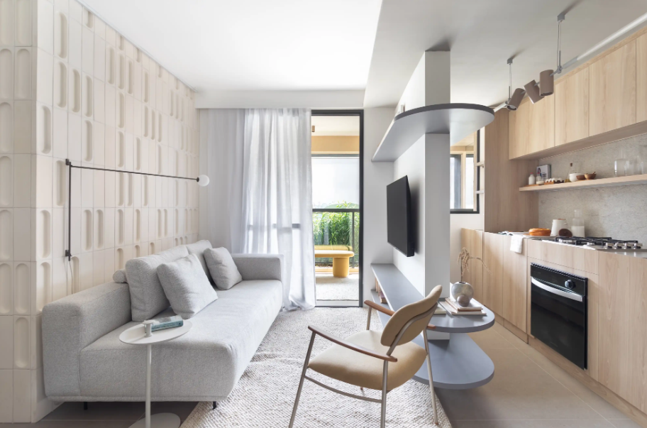 - impacto visual sem excesso de elementos: a própria textura já estrutura o espaço, sem depender de quadros, cores fortes ou muitos adornos;