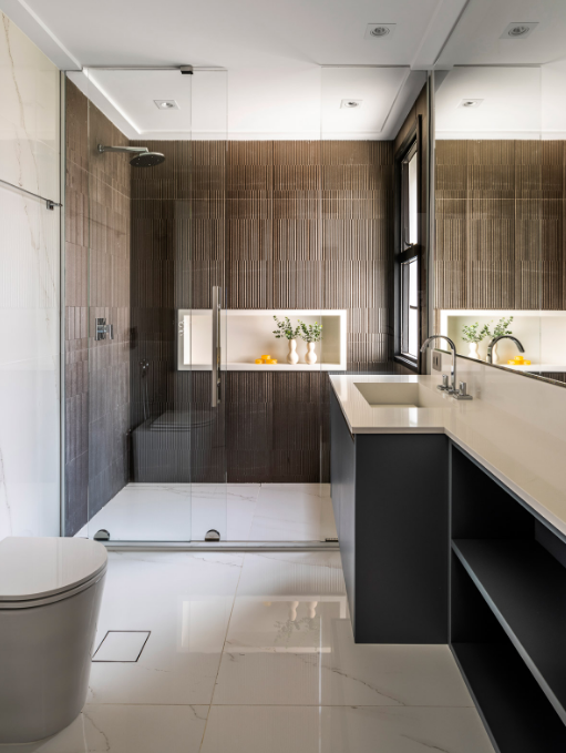 - possibilidade de valorizar áreas específicas: o material se aplica bem em diversas superfícies que pedem protagonismo visual;