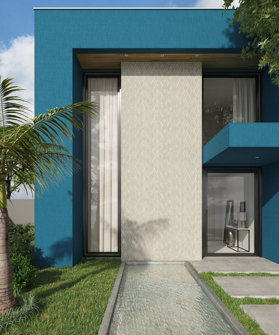 Fachadas, varandas e muros ficam expostos ao sol, à chuva e à variação de temperatura, por isso o material precisa ter resistência comprovada. Cerâmica, porcelanato e cimentício atendem a essas condições e ainda oferecem grande variedade de padrões. Com essa base no lugar, o revestimento 3D dá à construção uma presença visual que poucos outros acabamentos conseguem.