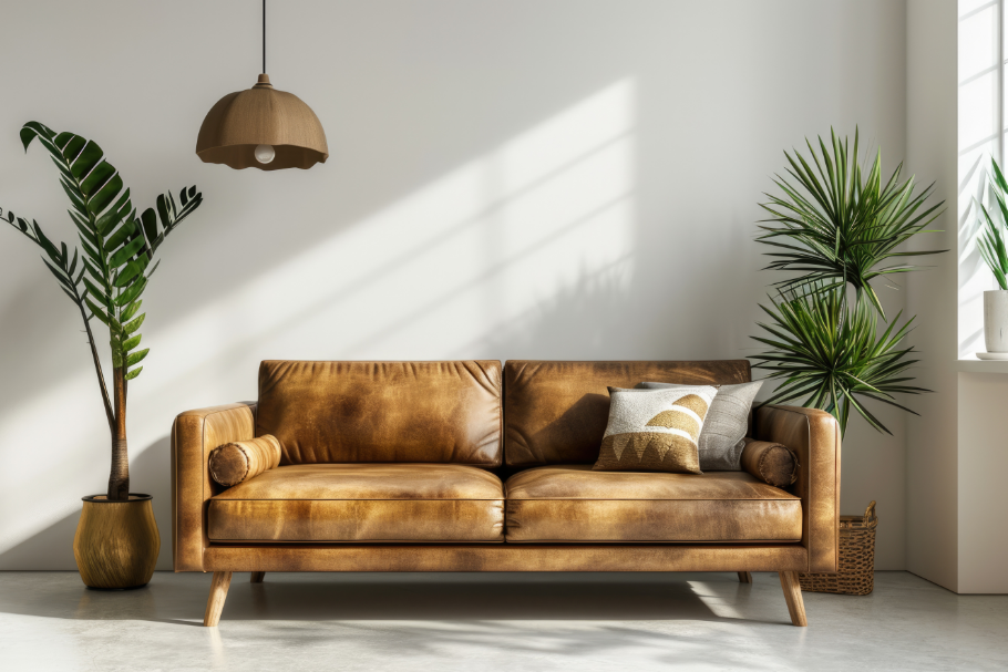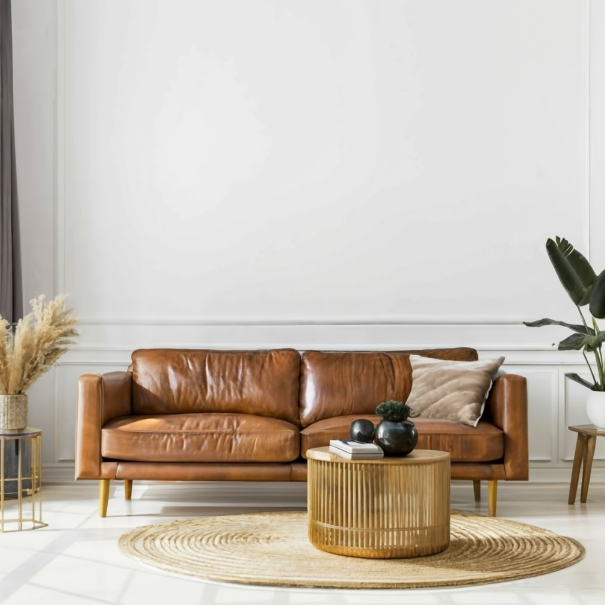 Couro natural e couro sintético são os acabamentos mais associados ao sofá retrô, pois apresentam aquela aparência estruturada e fácil de limpar. Para ambientes com mais textura, veludo e linho são excelentes escolhas e trazem profundidade ao estofado.