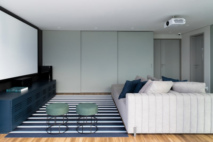 Para um visual harmonioso, o tapete deve ter 15 a 20 cm a mais que a área demarcada. Quando ficar parcialmente sob móveis, precisa avançar ao menos 15 cm. Em espaços pequenos, evite modelos volumosos, como felpudos grandes, para manter a leveza.