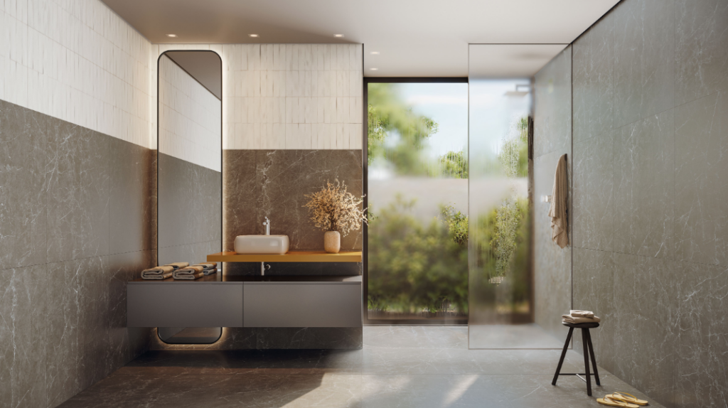 Em áreas molhadas, revestimentos cerâmicos como o porcelanato facilitam a limpeza no dia a dia – Foto: Ceusa