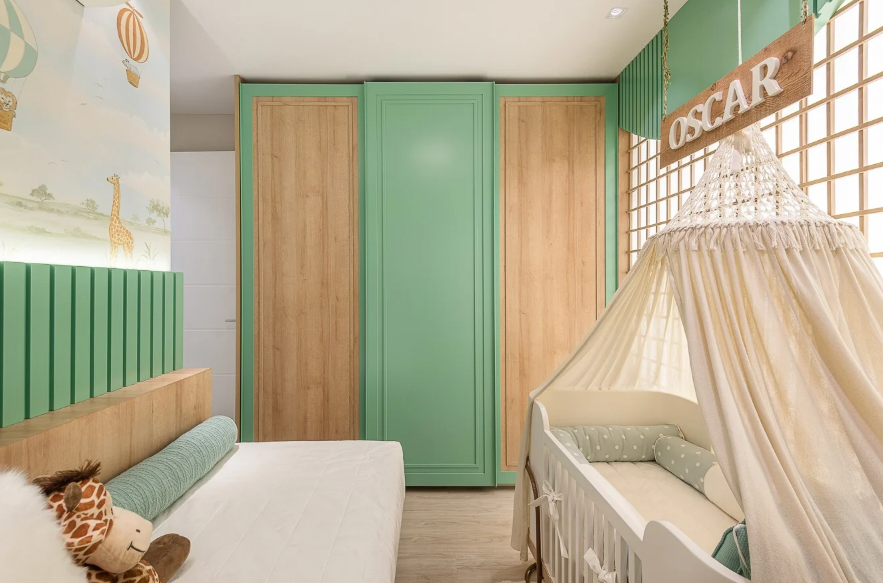 O estilo decorativo também influencia a escolha. Verde musgo, por exemplo, combina com quartos rústicos e cria uma atmosfera mais intimista. Verde água ou menta são boas opções para quartos infantis, pois acrescentam delicadeza e deixam o ambiente mais alegre.