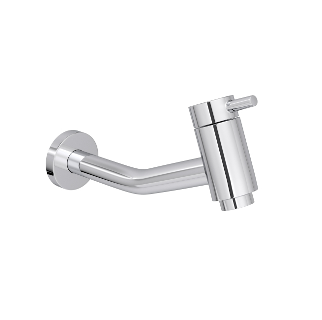 A linha Link aposta em formas arredondadas e design minimalista, e a bica longa de parede projeta a saída de água com mais distância da parede. O acabamento cromado neutro deixa a silhueta curva da peça como destaque na composição.