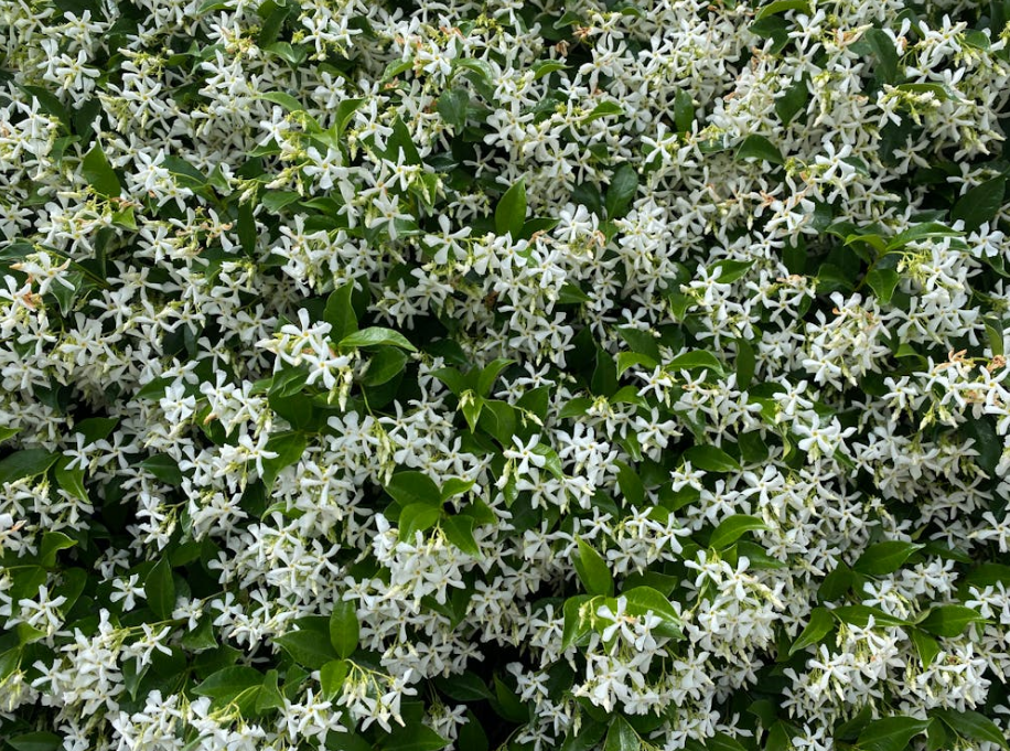De crescimento rápido e aroma marcante, o jasmim-estrela é do tipo volúvel e se espalha com facilidade por pergolados e cercas. Se desenvolve bem em sol pleno e pode atingir até seis metros sem podas. As flores brancas e a resistência a diferentes climas trazem segurança.