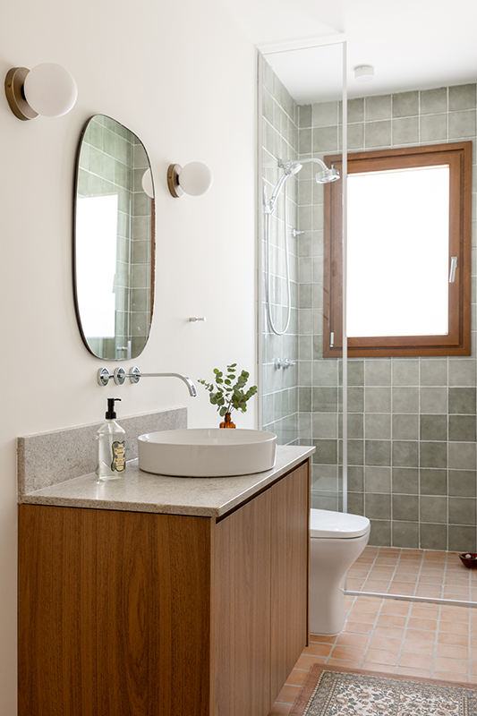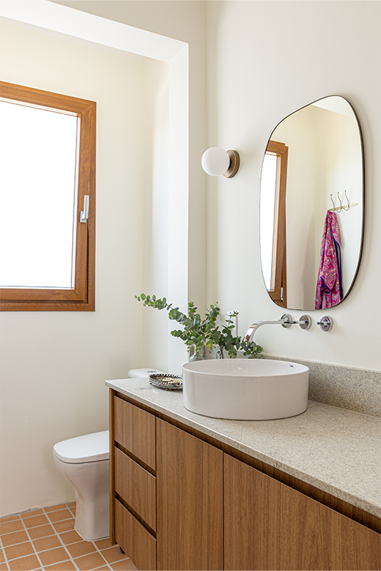 Os banheiros seguem a mesma lógica do restante da casa, como ambientes bem resolvidos. “Cada escolha foi pensada para ser funcional, mas com charme, evidenciando o conforto estético, bem como a otimização de espaços”, explica a arquiteta Victória Fadul.