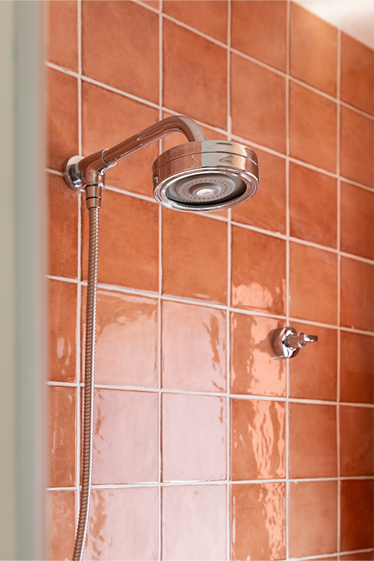 Já no banheiro da suíte, o foco está no conforto e na experiência de uso. A reorganização do layout permitiu ampliar o box e integrar um banco, tornando o espaço mais acolhedor. As louças da Celite acompanham essa proposta, com a bacia VIP novamente aplicada por sua versatilidade e eficiência, enquanto as cubas de apoio Celite Slim contribuem para um conjunto equilibrado e discreto. O chuveiro Master complementa o ambiente com um banho confortável, trazendo ao cotidiano uma sensação de relaxamento inspirada no uso hoteleiro.